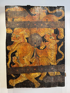 When Ginia (a.k.a. Virginia) was in Ithaca to talk about her book, we were standing in my workroom, where I have a Tibetan monk's cell door on the wall. Ginia suggested the door might work, we spent time experimenting with detail from it, and yes, it did.
