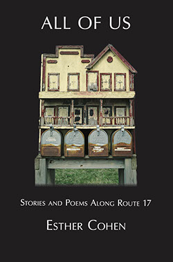 "Masterful poet and storyteller Esther Cohen invites readers to take a day-trip with her from bustling Manhattan to a quiet rural town in Upstate New York where porch-sitting, tomato-growing, and post office chitchat are appreciated and valued. Serving as both driver and tour guide, Cohen introduces us to a memorable cast of imperfect, identifiable villagers: loudmouths, late-in-life lovers, jilted spouses, settled seniors poised to jump off the diving board into the bracing waters of risk. US – Stories and Poems Along Route 17, a celebration of what’s extraordinary about the ordinary, is rendered in a unique hybrid form and characterized by Cohen’s open heart, her refreshing lack of judgment, and her appreciation of the simple beauty of the natural world. I urge readers to let this gifted writer transport you through the pages of her original and wonderful book." -- Wally Lamb